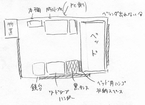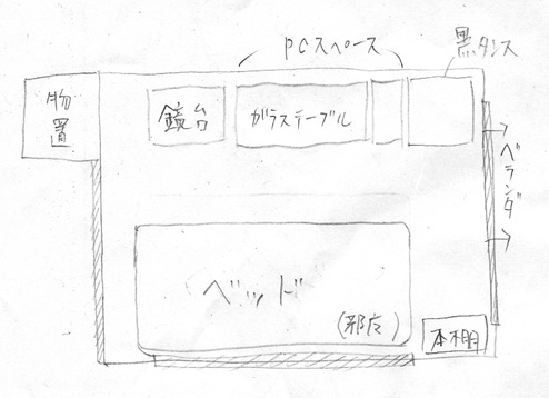 PCスペースとどでかい二段ベッドに挟まれて、座る場所の前後の幅が横向きの畳一枚分くらいしかありませんでしたorz