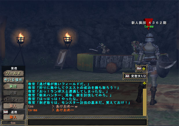 眠気もなく暇だったのでちょっくらギアノス(←モンスターの名前)でも狩ってみるかーとプレイしていたら、まだ友達も居ないのに急にチャットが表示され驚いた!